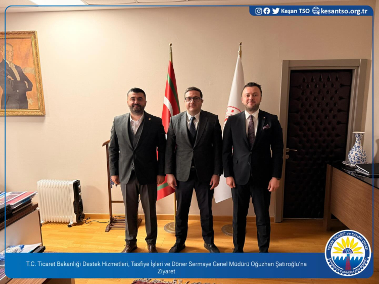 Keşan TSO heyeti, son olarak T.C. Ticaret Bakanlığı Gümrükler Genel Müdürü Mustafa Gümüş’ü ziyaret etti. Ziyarette; İpsala Gümrük Kapısı başta olmak üzere bölgedeki gümrük işlemlerinin işleyişi, altyapının güçlendirilmesi, ticaretin hızlandırılması ve sınır kapılarının bölge ekonomisine katkısının artırılması konuları ele alındı.